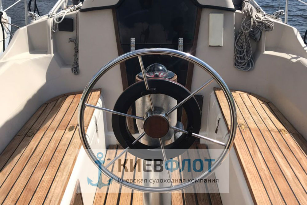 Обстановка на палубі цієї яхти відрізняється мінімалізмом, простотою та функціональністю. Тут немає нічого зайвого чи непотрібного. На відкритій палубі проводяться фотосесії, дівич-вечори або парубочі. За необхідності кокпіт можна накрити знімним тентом.